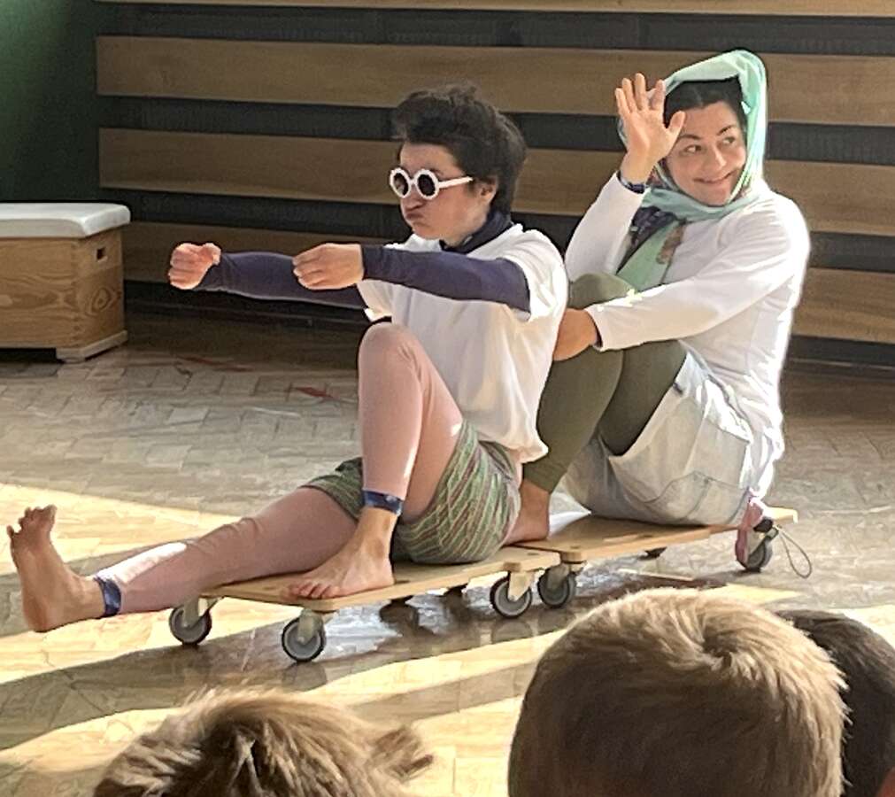 Der Förderverein der GS Schloßau ermöglichte das Tanztheaterstück "LOS-GEROLLT - Gemeinsam ins Anderswo". In ihrer tänzerischen Darbietung mit nur zwei Rollbrettern, starkem Ausdruck und viel Situationskomik entführten die beiden Künstlerinnen die Kinder der Klassen 1 bis 4 als "Hic" und "Nunc" in eine phantasievolle Zauberwelt. Sie stellten sich die Frage: Was braucht es wirklich im Leben? Den besten Grip, das schnellste Board, die verrückteste Idee oder einen Menschen, mit dem man alles teilen kann?
