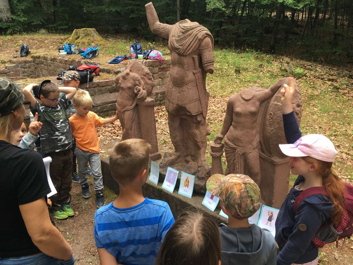 Mit der Wanderung zur Limes-Wachturmstelle "Schneidershecke" beendete die Grundschule Schloßau das Jahresthema Römer gemeinsam mit allen Klassen. Die Wachturmstelle in Schloßau stellt sicher eine der interessantesten Stellen des Odenwaldlimes dar. Die Lehrkräfte hatten für die Kinder Informationen zur Wachturmstelle an sich, dem dort vorgefundenen „Heiligtum“ sowie ein Quiz zur Auffrischung des Schülerwissens zusammengestellt.